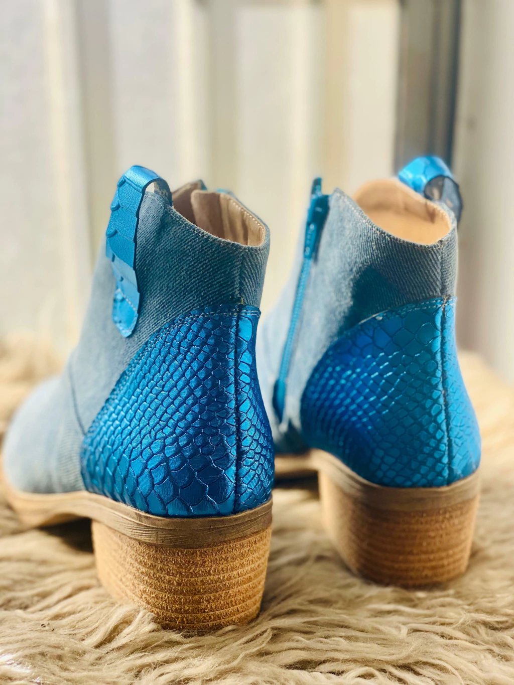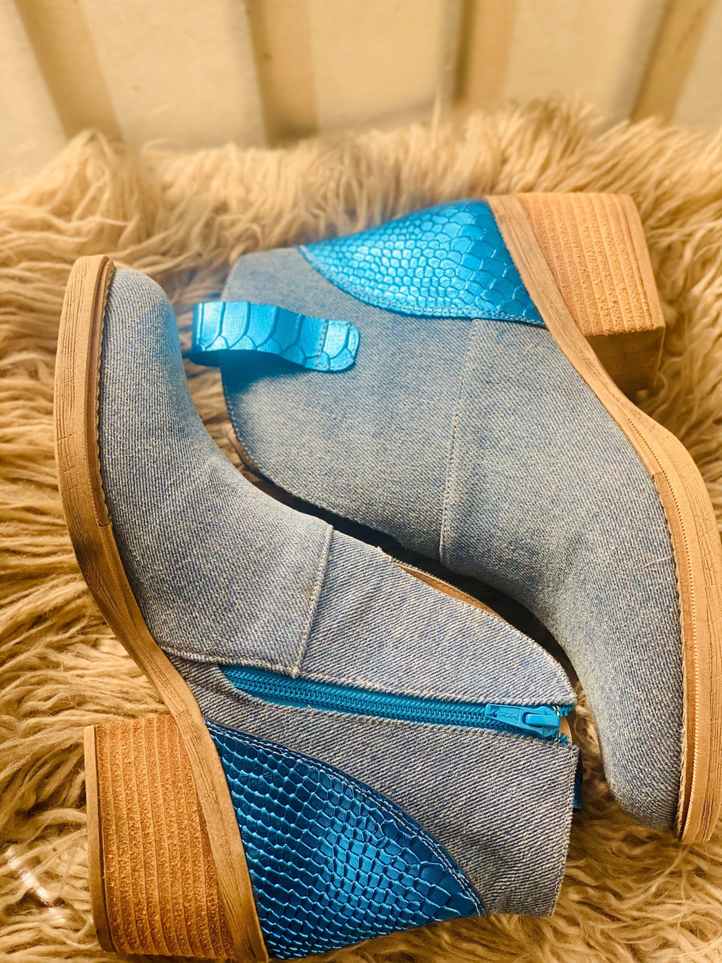 Bota realizada en jeans y cuero de excelente calidad.