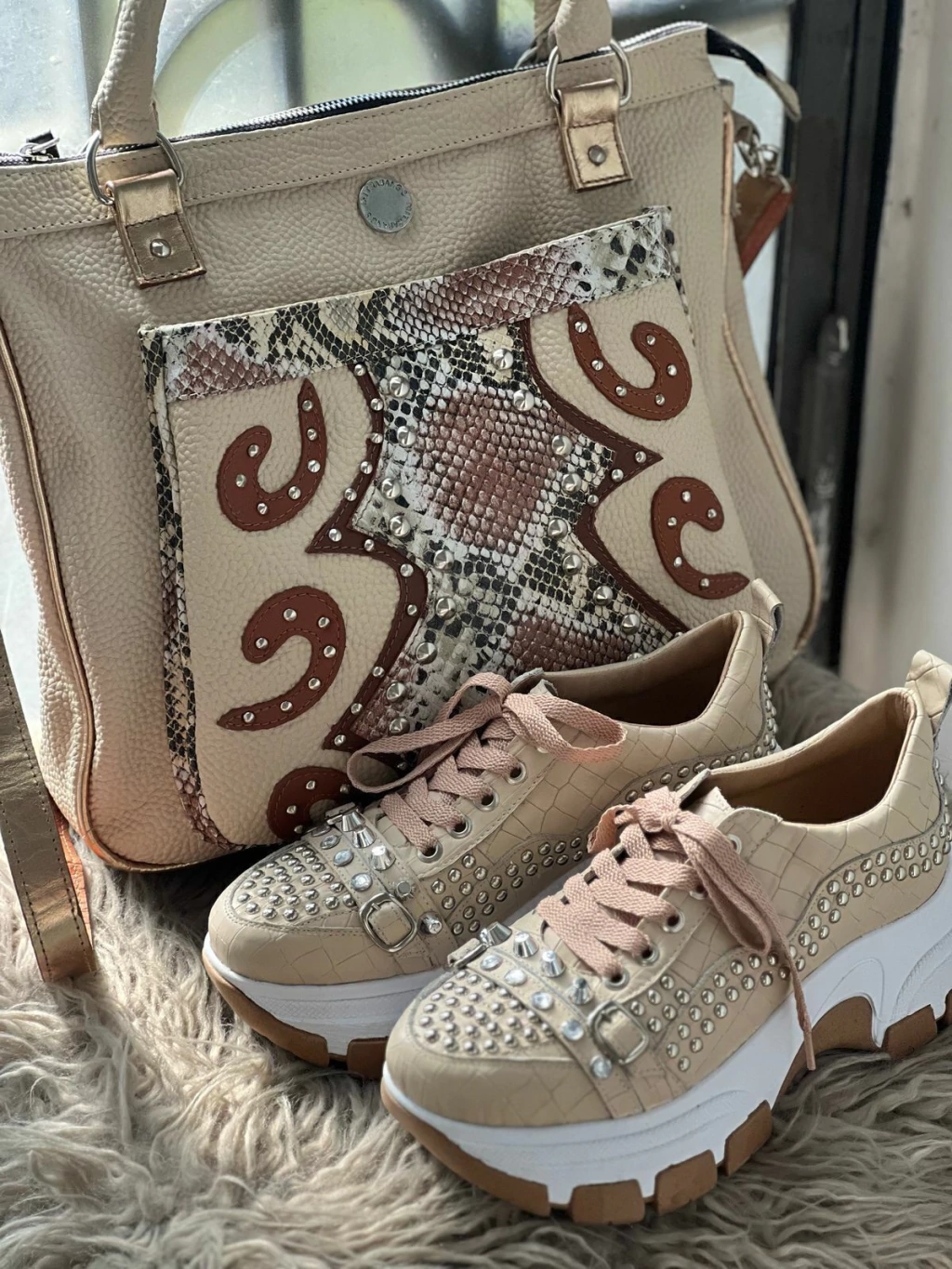 Conjunto Cartera Malena y Zapatillas Alberta Nude