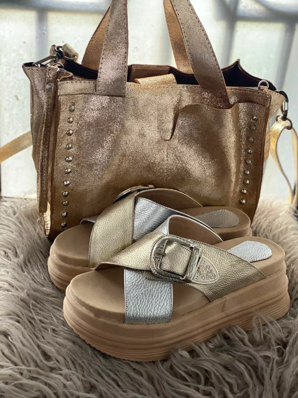 Conjunto Sandalias Joy y Baul Clari Jeans con Manija Suela
