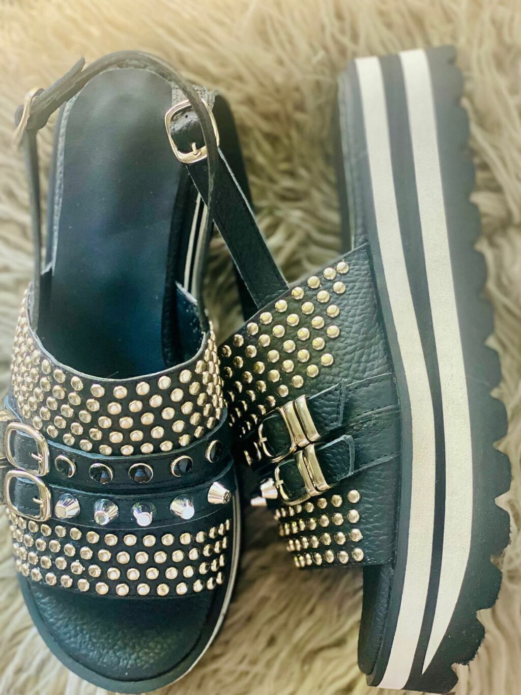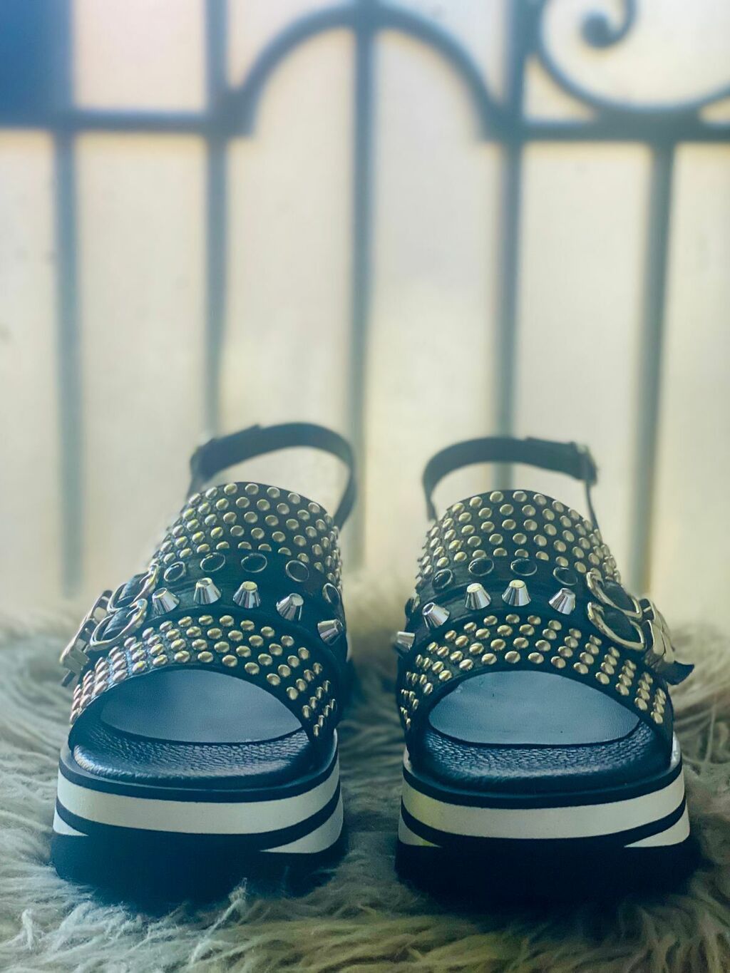 Conjunto Mochi Cande jeans Negro Print y Sandalias Sofi