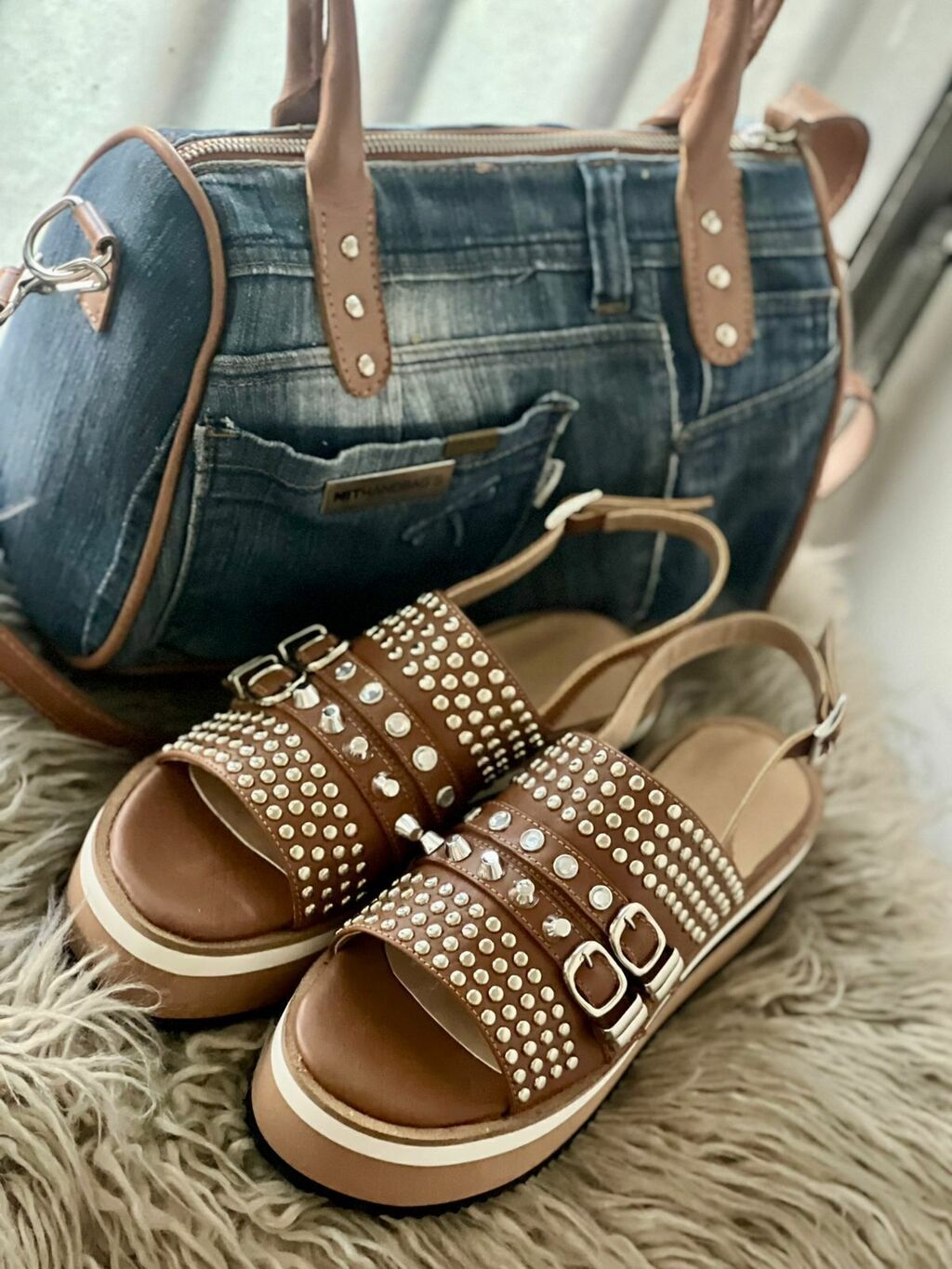 Conjunto Mochi Cande jeans Negro Print y Sandalias Sofi